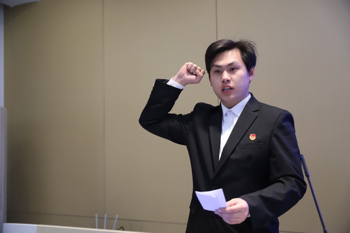 裁判员代表陈相均、参赛选手代表刘博分别代表裁判员和参赛选手宣誓。