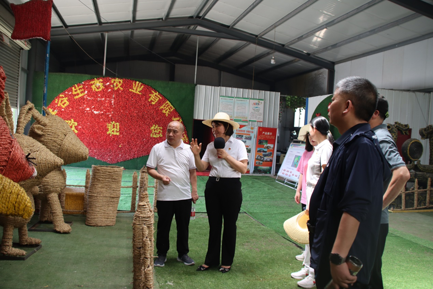 正当盛夏,南雷村稻草编织馆却是一派繁忙景象。在张庭莲的陪同下,老师们观摩了南雷村乡村振兴稻草编织馆,现场学习南雷村富民强村的典型做法。黄新主席详细了解“农林谷” 个性化定制作品的市场定位、营销渠道等,高度赞赏了张庭莲的为民情怀。