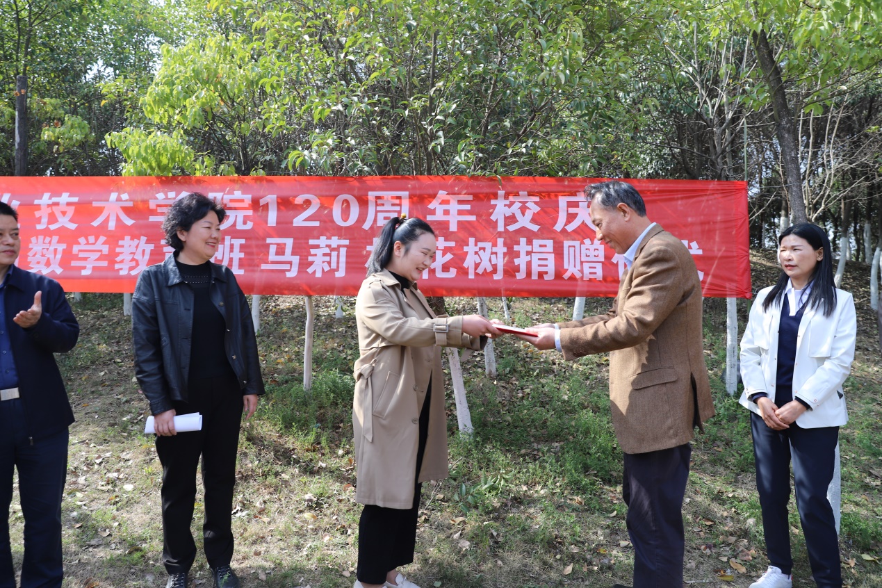 缘聚桂香山,共话校友情,3月15日下午,beat365正版唯一官网必一数学教育专业2016届毕业生马莉向母校捐赠桂花树仪式在桂香山举行,校友马莉向母校捐赠桂花树120棵喜迎学校120周年华诞。学校副校长王豪,纪委书记蒋有红,党办主任张国锋,后勤管理处处长梁其军,beat365正版唯一官网必一党总支书记严正香出席仪式,辅导员及学生代表120人参加仪式。仪式由beat365正版唯一官网必一院长黄德成主持。