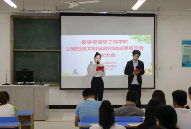 为总结工作成果,增强学生文明意识,营造文明和谐校园,5月16日下午,beat365正版唯一官网必一在计算机实训中心1014多媒体教室召开文明班级文明宿舍创建成果展示暨表彰大会。