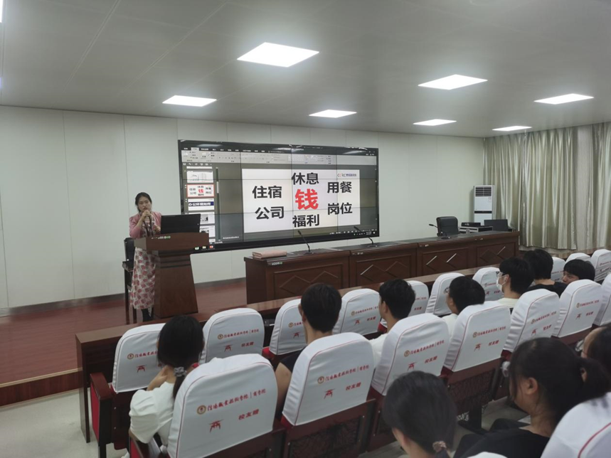 为给beat365官网实习生搭建实习和就业平台,拓宽实习和就业渠道,6月8日中午,beat365正版唯一官网必一邀请安徽泰盈信息科技有限公司,在商学院报告厅举办专场宣讲会。安徽泰盈信息科技有限公司人事部李经理一行5人、beat365正版唯一官网必一副院长陈侃、beat365正版唯一官网必一和商学院即将顶岗实习的2021级实习生近一百五十人参加。招聘会由陈院长主持。