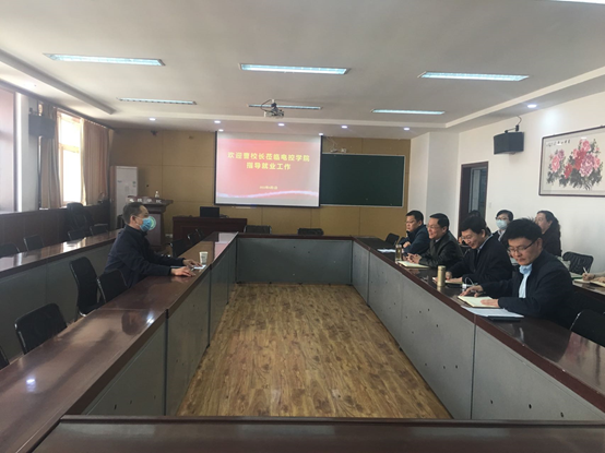 2022年4月2日下午14:30,副校长曹明到350vip8888新葡的京集团调研指导就业工作,会议由院党委书记杨华主持,参加会议还有学院党政班子、行政人员及全体辅导员。